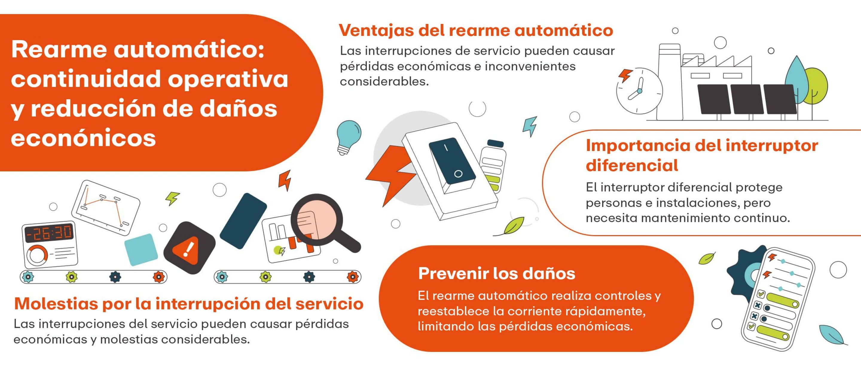 El sistema de rearme automático monitoriza el estado del sistema y, si no detecta ningún problema, restablece el suministro eléctrico con tiempos y costes extremadamente reducidos en comparación con la intervención humana, actuando a la vez como mantenedor del diferencial.