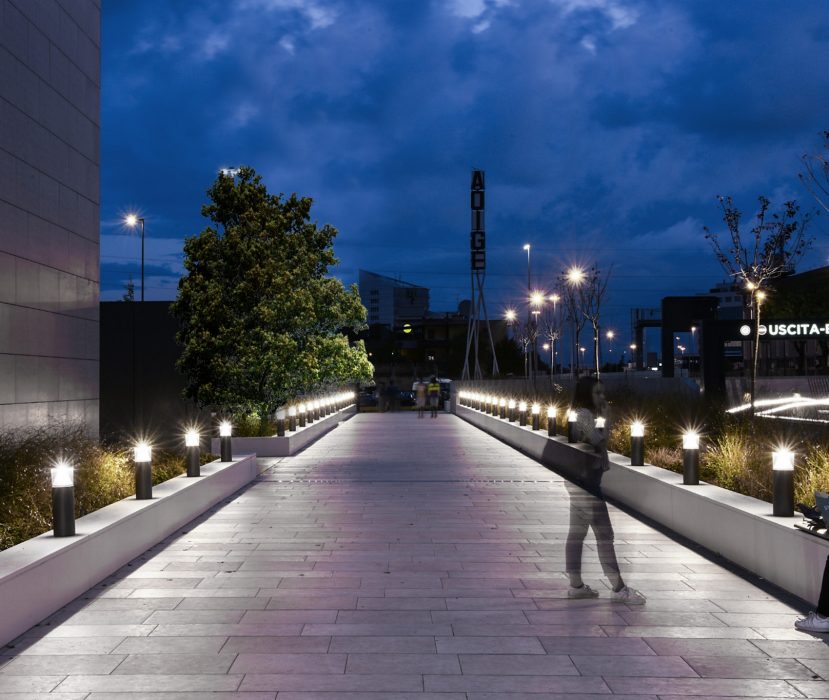 Luminaires sur mât pour l'éclairage des zones urbaines afin d'améliorer la qualité des espaces urbains, conformément aux lois régionales et aux réglementations relatives à la réduction de la pollution lumineuse telles que la norme UNI 10819.