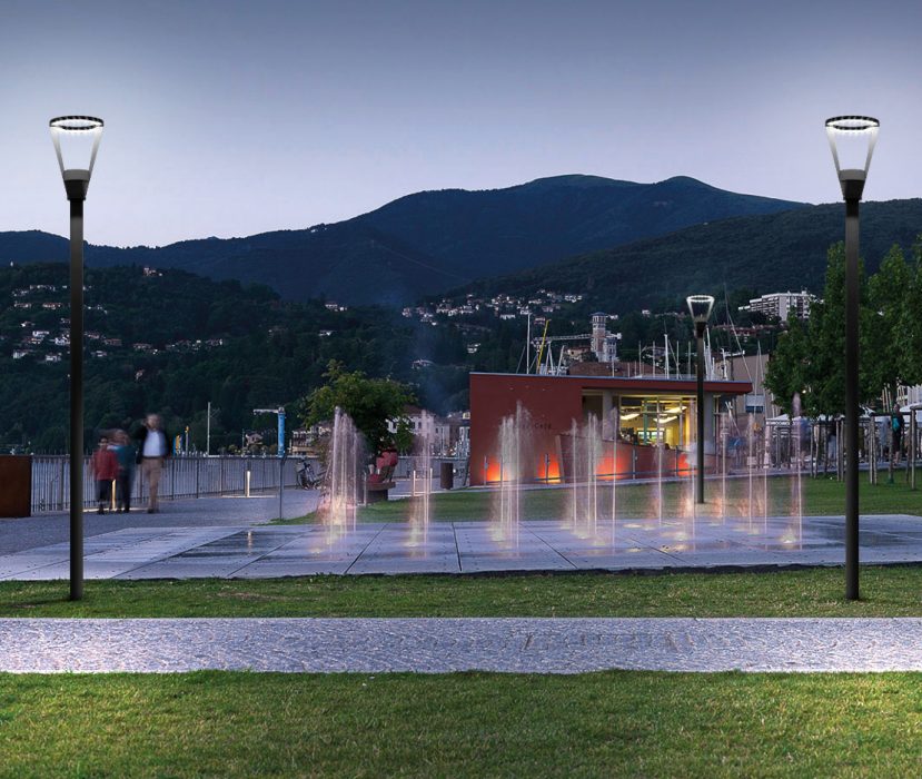 Luminaires montés sur poteau avec un indice de protection IP élevé. Flexibles dans leur application, ils sont conformes à la norme UNI 10819 et aux lois régionales protégeant les environnements urbains et résidentiels de la pollution lumineuse.
