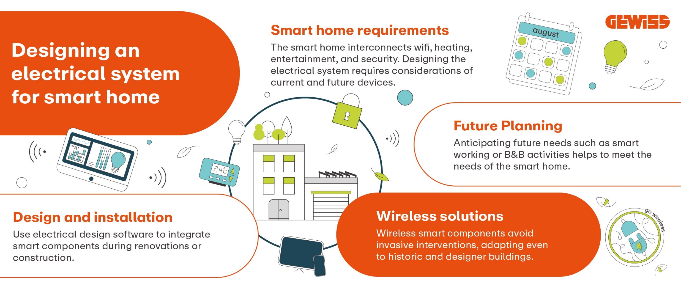 Smart homes offer the possibility of installing new system components even at a later date and cover every aspect of the home. It is therefore important to design the electrical system connected to smart systems so that it is open to the future needs in all areas of the home, following the right steps for a high-standard result.