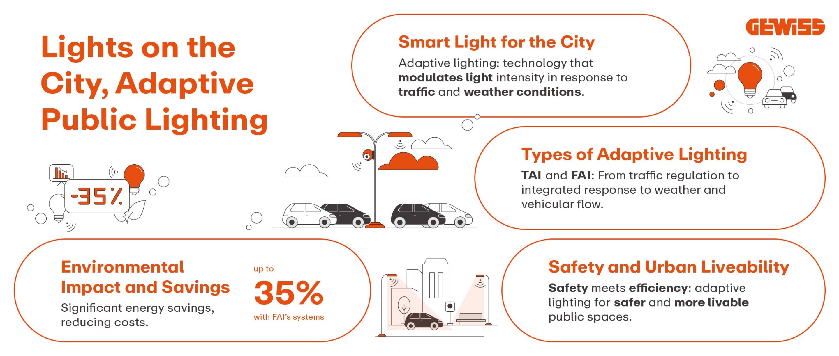 Adaptive lighting is an intelligent lighting system that aims to reduce waste with scientific precision and is one of several energy efficiency measures that brings enormous benefits in terms of liveability and savings to modern cities. This technology makes it possible to automatically vary the intensity of lighting in streets and public areas according to different conditions, such as weather, traffic and safety requirements.