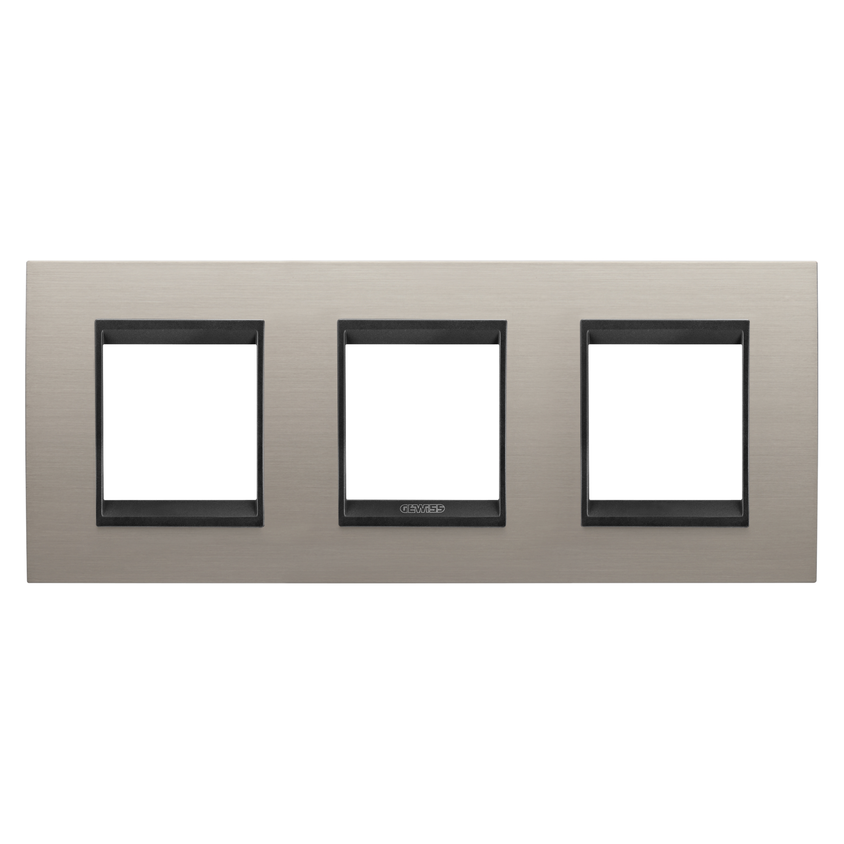 LUX INTERNATIONAL PLATE - IN METAL - 2+2+2 MODULES HORIZONTAL - BRUSHED ALUMINIUM LAVY - INNER FRAME MATT BLACK - CHORUSMART