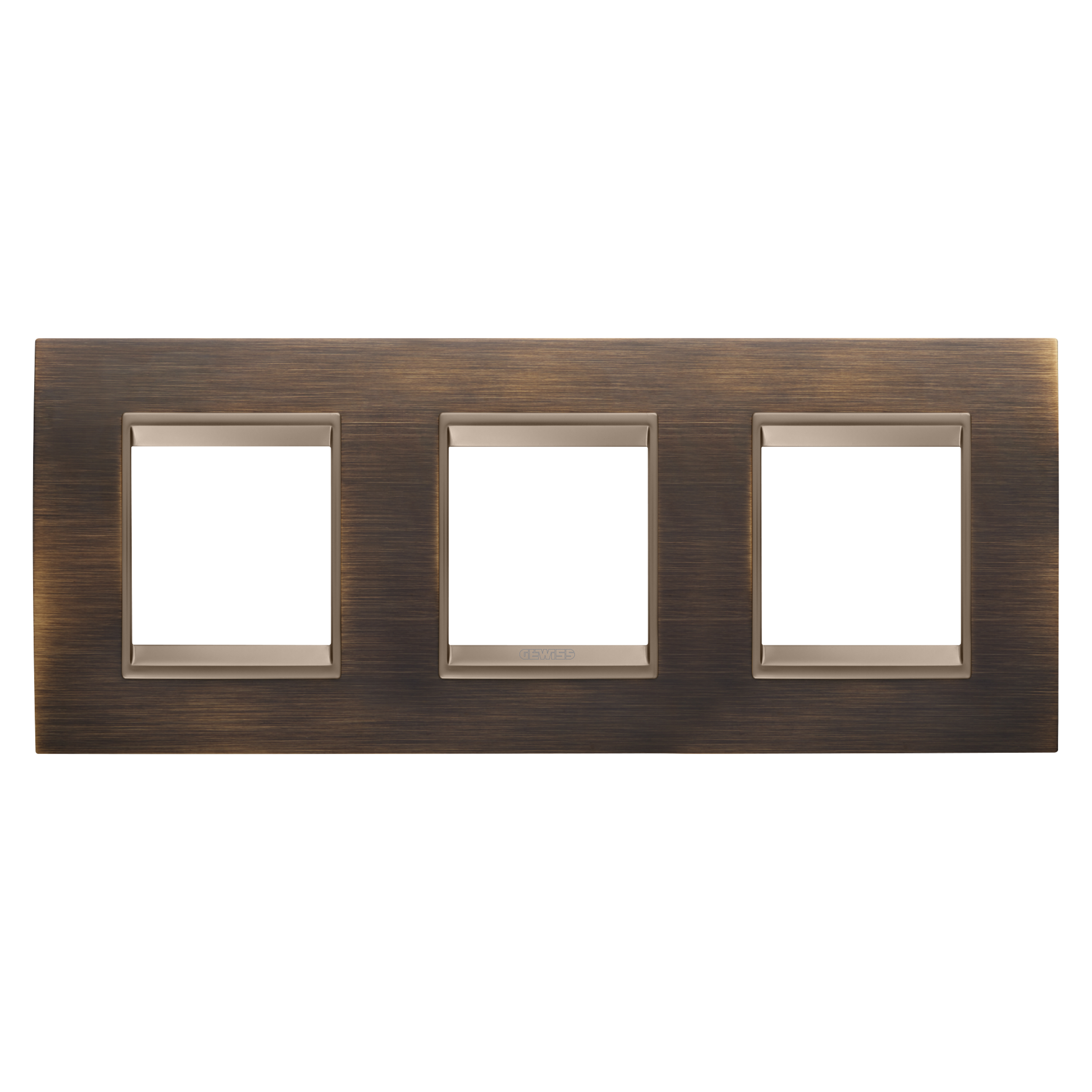 LUX INTERNATIONAL PLATE - IN METAL - 2+2+2 MODULES HORIZONTAL - ANTIQUE BRASS LAVY - INNER FRAME MATT DARK BRONZE - CHORUSMART