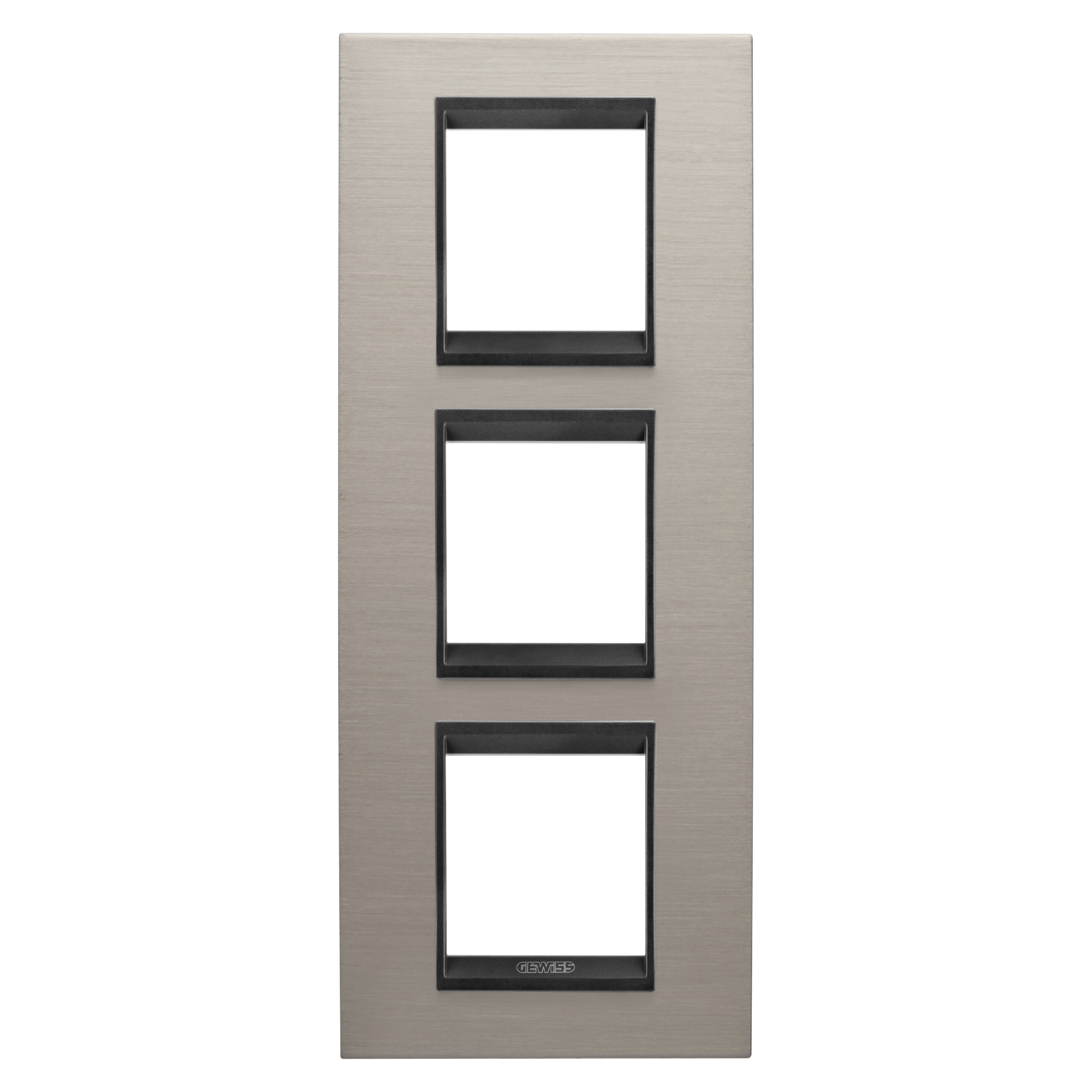 LUX INTERNATIONAL PLATE - IN METAL - 2+2+2 MODULES VERTICAL - BRUSHED ALUMINIUM LAVY - INNER FRAME MATT BLACK - CHORUSMART